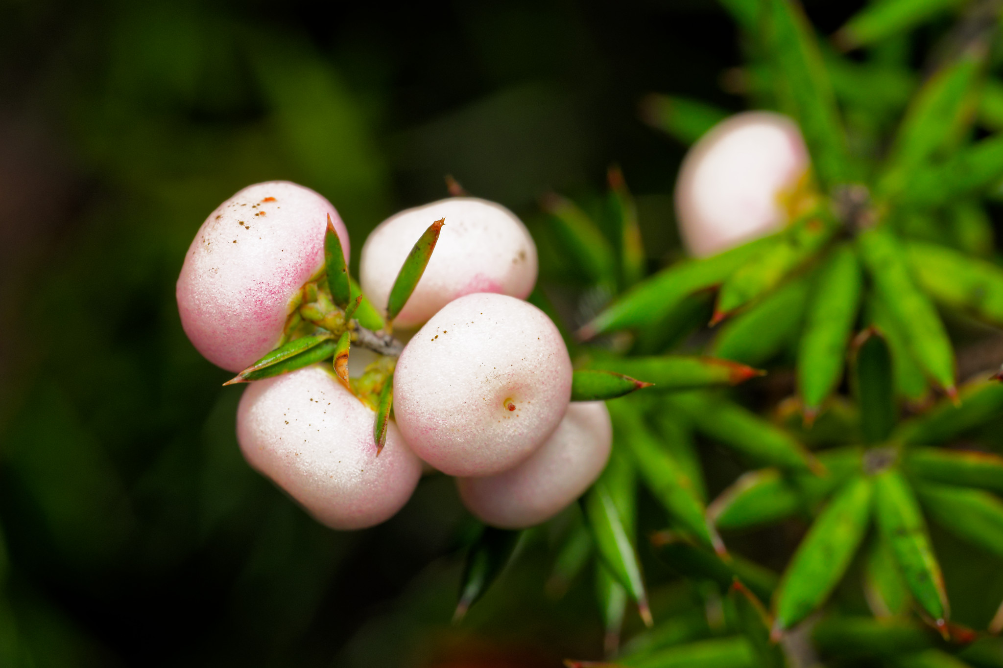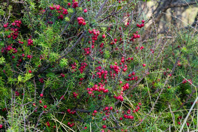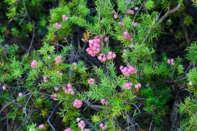 The fruits come in different colours, although they are near enough the same on a given shrub. We can see white, pink and red fruits and the following photos are from shrubs within 10 metres of one another.