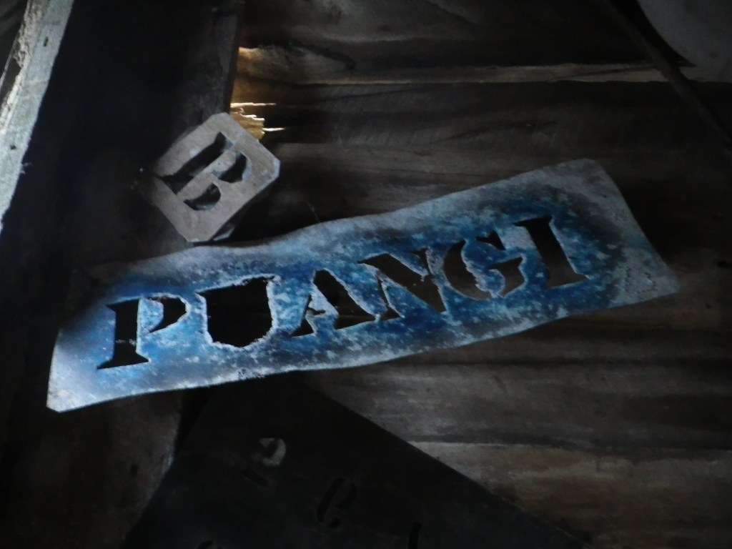 We calculated that Ross left behind about 30 lineal feet of books and magazines. Some were on bookshelves when we arrived, many were in boxes in the big bedroom, and some were sitting damply in the shed, including the 1914 First Edition of Guthrie-Smith’s Mutton Birds and Other Birds. Peter took it home and dried it out to stabilise it as best he could. Besides the book some of its writing has not aged well, with Guthrie-Smith struggling in the preface to reconcile his ideas of the need to preserve nature with having to squeeze nature by growing the (white) human population in a country that was uncomfortably close to the “yellow races”. We really couldn’t move for books and magazines, and we had a big session one night, Peter putting aside a keep pile and a chuck-out pile, and I going through the latter to rescue any I thought worthy. We tried to keep a representative sample of Ross’ wide interests, even if they didn’t do anything for us. We did have to throw out a multi-volume history of the second world war just to make some space. In all, we estimate 10 cubic metres of books and material from the house and shed went down to the beach to be packed into fadges and barged off by Johnson’s.