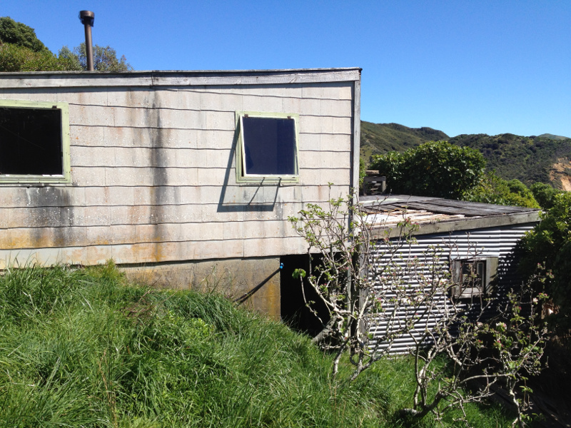 It looks like he had electric light there from quite early on, with a couple of light switches, one next to where his bunk would have been. There is a hole in the ceiling lining indicating where a stove flue was and some nice shelves. Initially there was a dirt floor but now there is a very thin, crumbling concrete topping. There was a woman on the scene and Ross said he added the third room for her, but she evidently balked at the dirt floor and demanded something be done; neither she nor the floor worked out. I am not clear whether there were two women or one or if the years got mixed up in the telling, but possibly in the mid-70s Ross was going to marry a woman from “up the Pelorus”. She found the going tough out on the island and didn’t last more than days or weeks. A neighbour remembers that Ross became a bit reclusive after this mid-70s episode. Ross also told me, in I suspect a well-practised story, that he went to Wellington once with the intention of finding a wife. He allowed a full week, but came home with only a hangover.