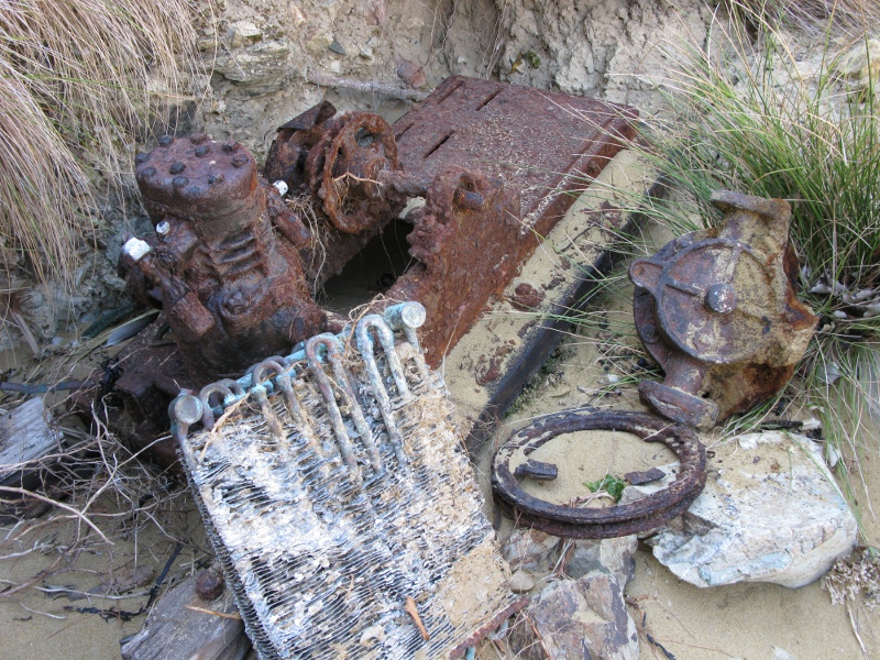 Ross fished commercially in the earlier days. He built the shed on the northern landing beach to house a freezer. He ripped out the electric motor and ran it from a diesel one with some type of external refrigeration coil arrangement. It came up out of the sand when we were tidying up the shed. The old freezer inside was full of sand and scrap metal, and had to be cut up to remove it, implying that Ross built the shed around it. Ross said that he experimented with wind power too and I jumped to the conclusion he meant for his fish freezer. Next to the shed is a cradle and rails to let his boat be winched in for maintenance.