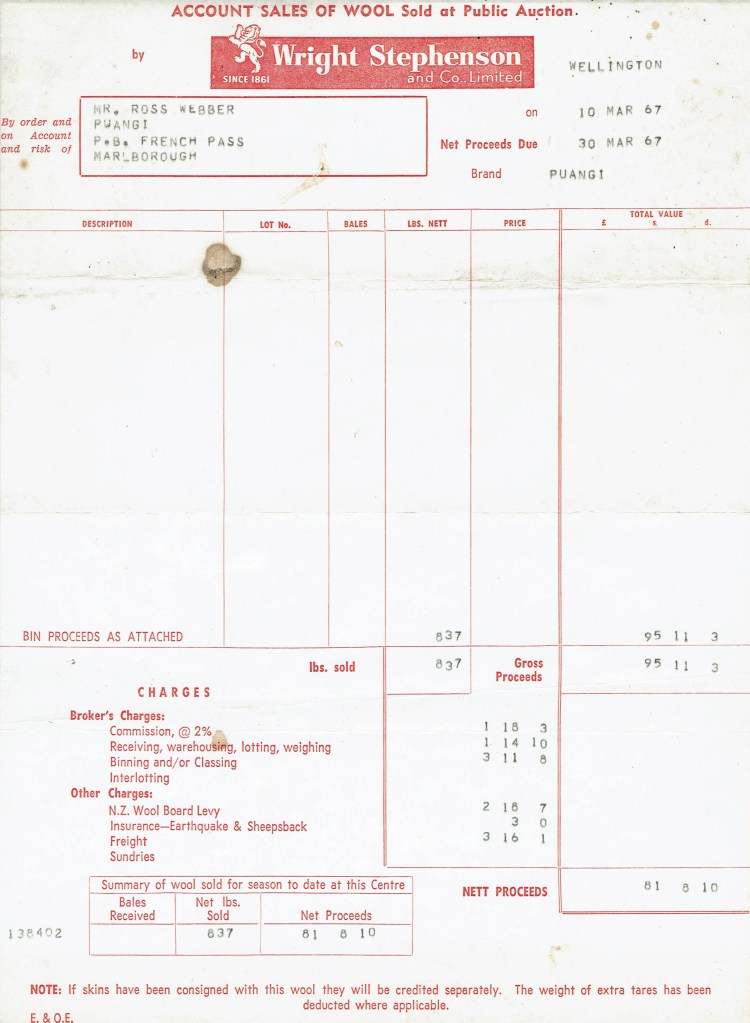 I was surprised to learn that Ross is no close relative of the long-standing Webber families from French Pass or Kapiti. He and his family were originally from Auckland. His grandfather was a Queen Street lawyer. The family of 5 (including a brother and a sister to Ross) moved to Nelson where Ross’ father was a Master at Nelson College. Ross had a couple of years’ schooling there too. When he left at about 16 he worked at many different outdoor jobs around the South Island- a musterer and bushman among them.