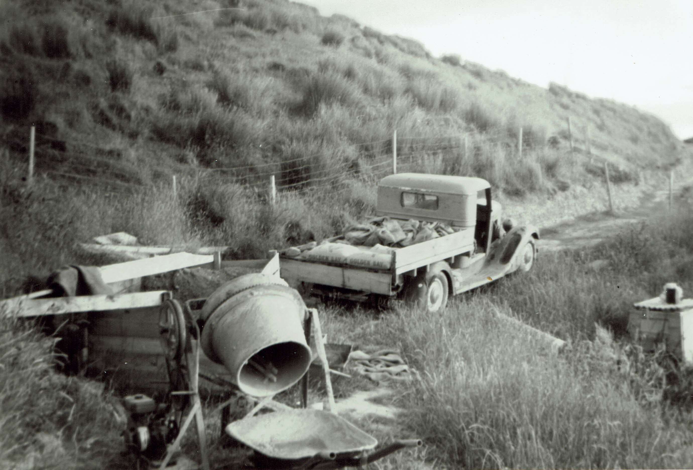 After a while, the 30 sq m three-roomed dwelling no longer served its purpose, and Ross began work on his final island house, directly uphill from Dwelling Two, which became the shed. The main island track was put in around this time and he had a truck on the island for transporting building materials. Ross has variously said that he housed the truck at French Pass for going to town, then brought it out later, or that he had two- one at the Pass and one for the island. The ownership papers, number plate and Operator’s Manual for his 1936 International are there; he bought it in 1965 from Vining and Scott in Nelson. Intriguingly there is also a 1942 Chevrolet Truck service manual which Ross has inscribed with his name and the year 1954. I’ll go with a truck both at the Pass and on the island.