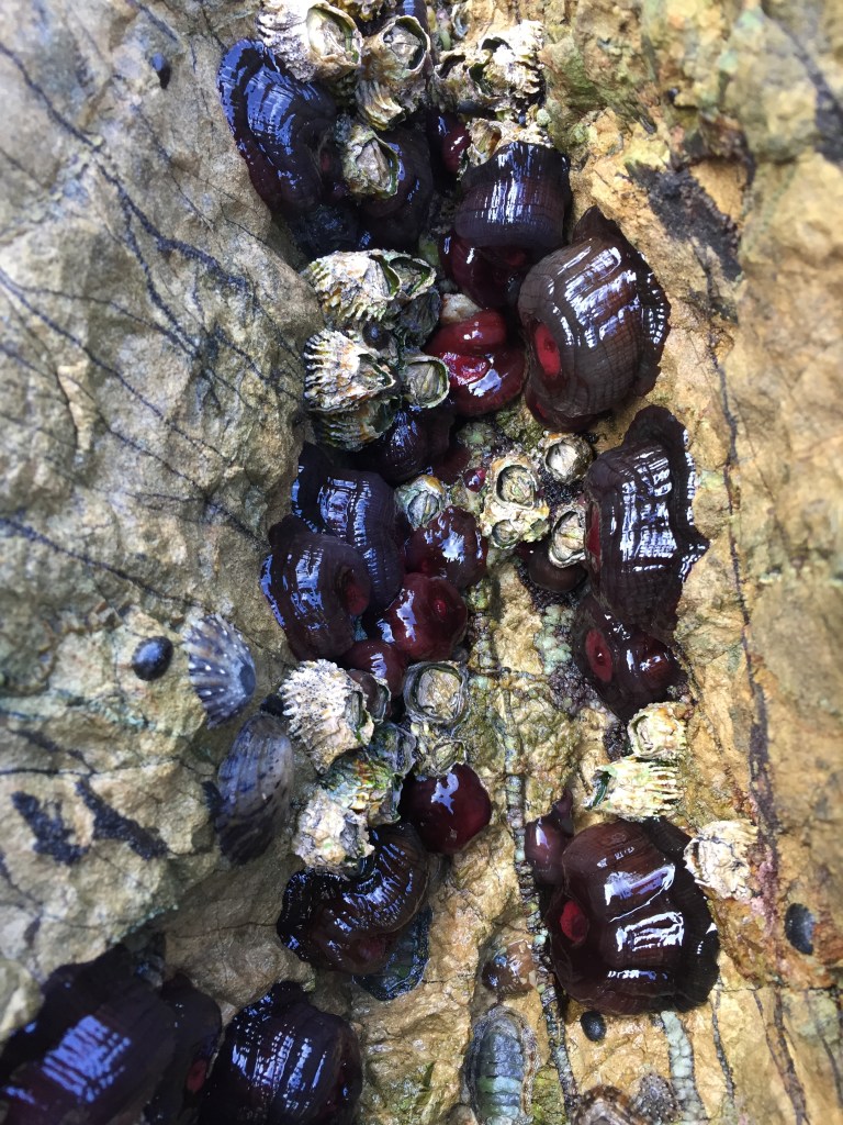 Our island restoration is limited to what happens on land, but we’re not immune to interesting stories about the surrounding sea, and the intertidal zone which is the focus of this article. It’s always nice to see that there are still reasonable numbers of fishes in the very outer Sounds area, and seals, dolphins and orca add excitement. The south end of Puangiangi is a traditional spot for catching blind eels, and Roma Elkington has explained to me how to remove the copious slime from these delicacies. On the sea floor nearby are bryozoan beds (see for example this report by Rob Davidson).