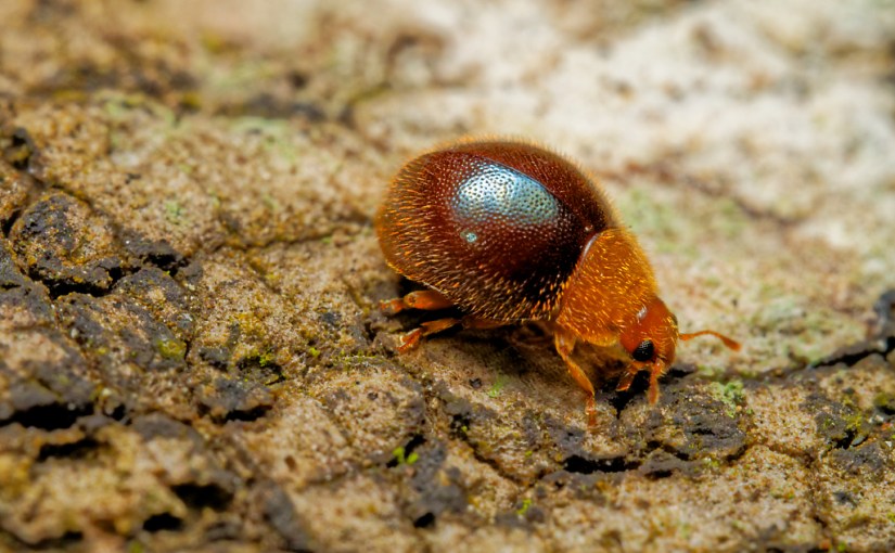 The yellow-haired ladybird is endemic to New Zealand and it’s said to be widespread but not commonly seen. They are quite common on tree trunks at night on Puangiangi. I haven’t seen them eating anything as yet.