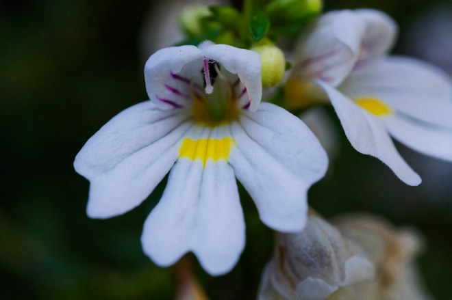 Chris Horne, Barbara Mitcalfe and Geoff Walls listed this Euphrasia during their survey of 2012. I’m not sure where they found it, but I first saw a single plant as recently as 4 years ago on a new track we put in. Since then it has self-seeded about 20 metres along the track and is strictly “don’t trim”.