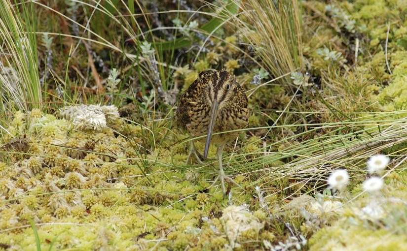 New Zealand snipe are extinct on the mainland, but several species still persist on mainly sub-Antarctic islands. The Campbell Island snipe is one of the rarest and least known birds on the planet. No-one knew it existed until a chance discovery in 1997. A team surveying for Campbell Island teal using trained bird-locator dogs landed on rarely visited Jacquemart Island, a sheer-sided 19 hectare stack off the south coast of Campbell Island. They failed to find teal, but were astounded to find snipe present, and succeeded in catching one. Jacquemart was scarcely capable of supporting more than 30 birds, putting the little snipe instantly into the critically endangered category.